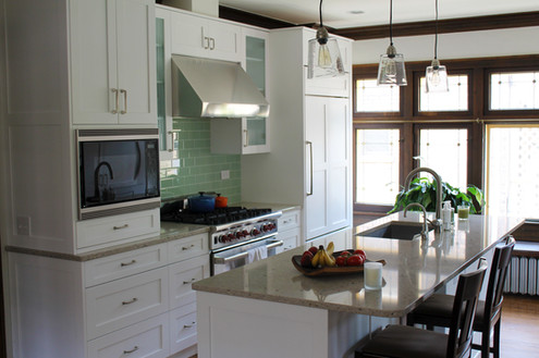 Brent expanded his cramped bungalow kitchen by rehabbing the original dining room space to serve as the new kitchen, while opening the adjoining wall to add a small dining area and better integrate the space.