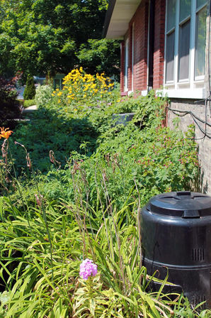 The existing bungalow backyard yard was minimally landscaped with invasive plants. Over a 4 year period and having researched the importance of native plants, Abigail removed turf grass and planted hundreds of native plants in her backyard. She also raised vegetable beds, installed rain barrels, and a compost bin. Abigail completed her sanctuary with a mission-style fountain, pergola and hammock from where she can observe the scores of pollinators and birds that visit daily