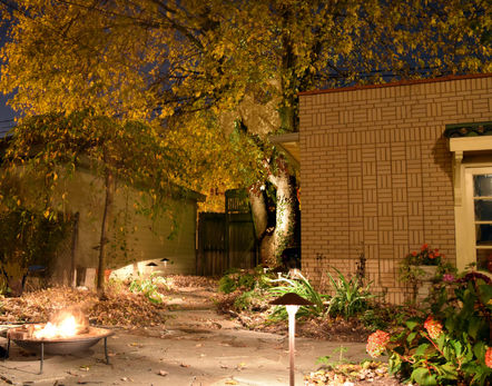 The original garage of Craig and Laurie’s corner bungalow was a safety hazard with foundation problems and a rotting roof. To redo the traditional garage construction would be costly, so Craig being an AIA architect and contractor, reconstructed it to match the original using unconventional and less costly methods. The roof tiles are original, but the brick façade is actually a thin-brick veneer installed over a rain screen system and wood frame. The historic approach blends with new features like French doors and complimentary landscaping to make it a unique focal point for the street.