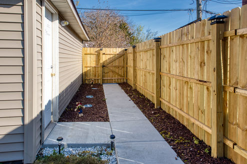 Leland and Lyieka's family bungalow is next to a Family Dollar with a large tree in the parking lot that damaged their property. After the business caused more damage trying to remedy the issue, Leland and Lyieka took on the repairs themselves. They significantly improved the value and curb appeal of their bungalow with repaved walkways, a privacy fence with lighting, and a regraded backyard.