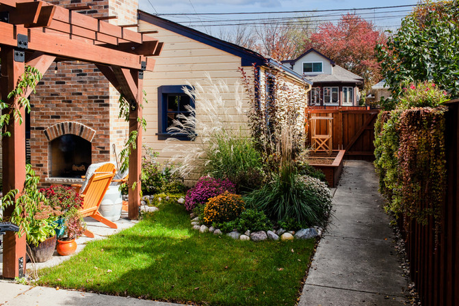 After a heavy windstorm blew off some siding from the garage, Joshua and Kelly decided to restore the garage and create an outdoor living space. Joshua designed and hand-built a pergola and patio seating area, then had new landscaping, fencing, and an outdoor fireplace installed. They now have a lovely outdoor oasis to sit, relax, and entertain.