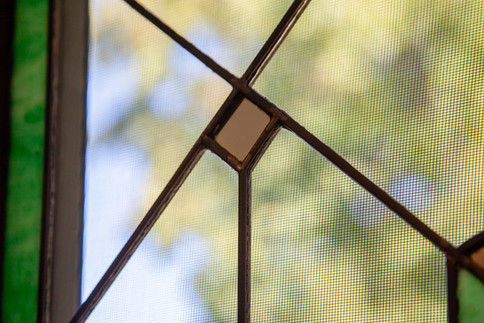 Tom's living room and bathroom windows were covered in layers of paint and had broken pulleys making them non-functional. Doing much of the work himself, Tom made repairs, refinished the wood, and installed new storm windows to protect the historic art glass from the elements.