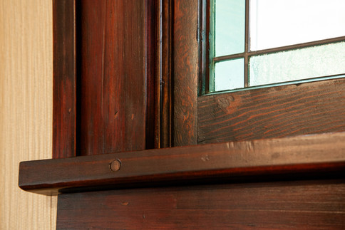 Janice discovered a beautiful art glass window hidden behind a plaster wall in her front room. She hired Mulligan Stained Glass Studio to restore the window, and added a new storm window to reduce draftiness and protect the historic art glass from the elements.