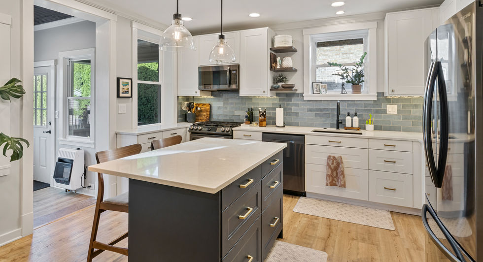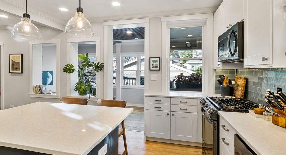 The Shatswells’ kitchen and back porch had low ceilings and bricked-in windows from the 1970s. By reopening the windows and adding a few more, they filled the space with natural light. Integrating the porch and a new pantry into the kitchen re-introduced original elements with modern function.