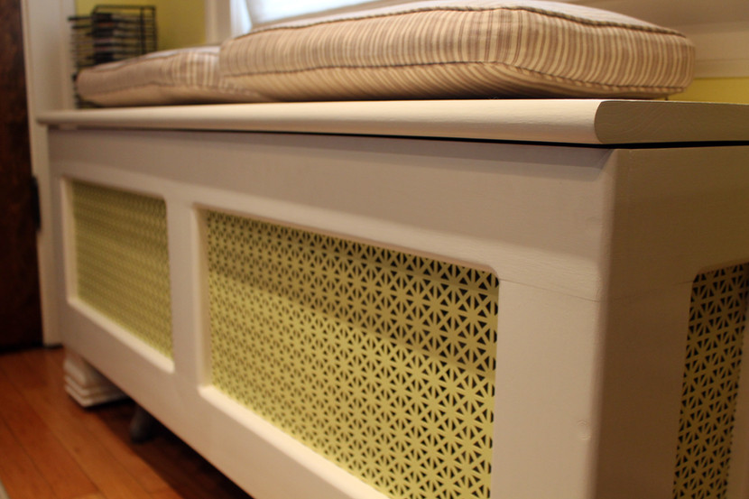 Designed and built by the homeowners themselves, this historically-inspired radiator cover doubles as a cozy bench—a clever and inexpensive solution to awkwardly placed radiators! View more photos here.
