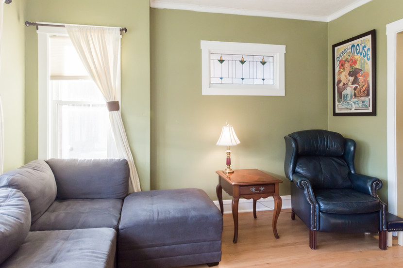 From the outside of their new home, the Adlers could see an original art glass window, but it was covered by a wall in the living room. They contacted an art glass expert from our Trusted Referrals directory, uncovered and restored the beautiful window, cleaned up the original storm window that remained, and built out a window frame on the interior for about $2,000. View more photos here.