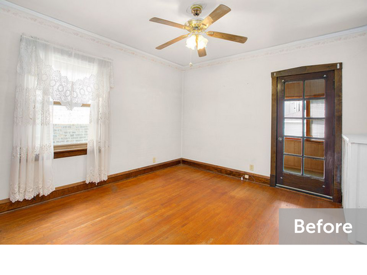 The front porch and entrance of the Bryants' new home had been covered in aluminum paneling and jalousie glass by previous owners. After receiving bids from contractors for upwards of $10,000 to do the renovation, Troy completed the work himself for just $1,300 in materials and tools. For this small budget, they achieved a huge impact! View more photos here.