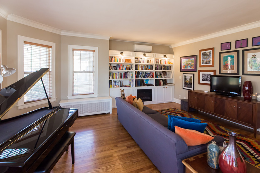 This bungalow's original fireplace and built-in shelves had been removed by previous owners. The Wiecherts wanted to return the living room to its original luster and add a focal point to the room. So for just $300 in materials, the family built a new faux fireplace with historically-inspired bookshelves over the course of just one weekend! View more photos here.